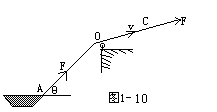 25.如图1-10所示,一人站在岸上,利用绳和定滑轮,拉船靠岸,在某一时刻绳的速度为v,绳AO段与水平面夹角为θ,不计摩擦和轮的质量,则此时小船的水平速度多大?