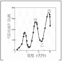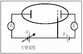 14、左图为富兰克(Franck)-赫兹(Hertz) 实验装置示意图,其中夫兰克-赫兹管内含有水银蒸气.1914年,夫兰克与赫兹用实验观察热电子被加速穿透汞蒸气时,到达回路阳极的热电子流大小的起伏变化,以验证汞原子内的电子能态是量子化的.右图为实验结果电流与电压的关系.下列有关此实验的叙述正确的是( )