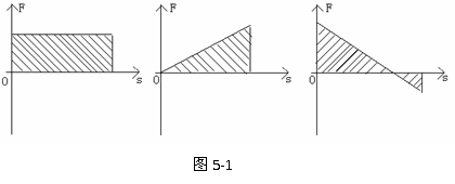 (4)根据F-s图象的物理意义计算力对物体做的功,如图5-1所示,图中阴影部分面积的数值等于功的大小,但要注意,横轴上方的面积表示做正功,横轴下方的面积表示做负功。