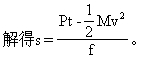 例4:一列火车由机车牵引沿水平轨道行使,经过时间t,其速度由0增大到v。已知列车总质量为M,机车功率P保持不变,列车所受阻力f为恒力。求:这段时间内列车通过的路程。