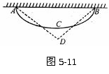例10:一质量均匀不可伸长的绳索,重为G,A、B两端固定在天花板上,如图5-11所示,今在最低点C施加一竖直向下的力将绳拉至D点,在此过程中,绳索AB的重心位置( )