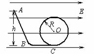 [例1] 如图所示的装置是在竖直平面内放置光滑的绝缘轨道,处于水平向右的匀强电场中,以带负电荷的小球从高h的A处静止开始下滑,沿轨道ABC运动后进入圆环内作圆周运动。已知小球所受到电场力是其重力的3/4,圆滑半径为R,斜面倾角为θ,sBC=2R。若使小球在圆环内能作完整的圆周运动,h至少为多少?
