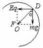 解析:小球所受的重力和电场力都为恒力,故可两力等效为一个力F,如图所示。可知F=1.25mg,方向与竖直方向左偏下37º,从图6中可知,能否作完整的圆周运动的临界点是能否通过D点,若恰好能通过D点,即达到D点时球与环的弹力恰好为零。
