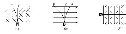 三种射线在匀强磁场、匀强电场、正交电场和磁场中的偏转情况比较:
