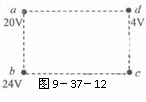 14.a、b、c、d是匀强电场中的四个点,它们正好是一个矩形的四个顶点.电场线与矩形所在的平面平行.已知a点的电势是20V,b点的电势是24V,d点的电势是4V,如图9-37-12,由此可知,c点的电势为( )