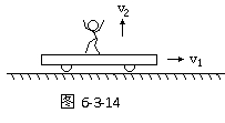 8.图6-3-14,质量为m的人立于平板车上,人与车的总质量为M,人与车以速度v1在光滑水平面上向东运动.当此人相对于车以速度v2竖直跳起时,车的速度变为: ( )