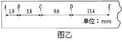 ②该同学选取如图乙所示的一段纸带,对BD段进行研究.