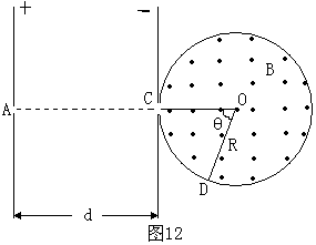 从C处对着圆心进入半径为R的固定圆筒中(筒壁上的小孔C只能容一个粒子通过),圆筒内有垂直水平面向上的磁感应强度为B的匀强磁场。