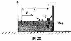 (09年广东省)3.(17分)如图20所示,绝缘长方体B置于水平面上,两端固定一对平行带电极板,极板间形成匀强电场E。长方体B的上表面光滑,下表面与水平面的动摩擦因数