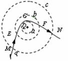 如图所示,在点电荷Q形成的电场中,带电粒子q仅受电场力作用,运动轨迹为MEGFN曲线,其中G点与等势面a相切,E、F两点在等势面b上,M、N两点在等势面c上。则以下判断正确的是( )