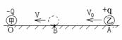 11.如图所示,一个电量为-Q的点电荷甲,固定在绝缘水平面上的O点.另一个电学量为+q及质量为m的点电荷乙,从A点以初速度v0沿它们的连线向甲运动,到B点的速度最小为v.已知点电荷乙与水平面的动摩擦因数为μ、AB间距离为L0及静电力常量为k,则 ( )