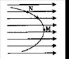 如图,一带负电粒子以某速度进入水平向右的匀强电场中,在电场力作用下形成图中所示的运动轨迹。M和N是轨迹上的两点,其中M点在轨迹的最右点。不计重力,下列表述正确的是