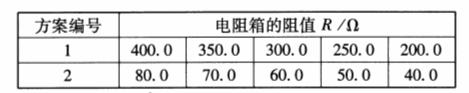 的定值电阻两端的电压U,下列两组R的取值方案中,比较合理的方案是____.(选填1或2)