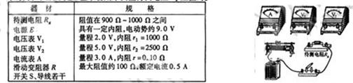 电压表V1 量程3V 内阻约为900![]()