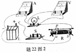 ②某同学已连接如题22图2所示的电路,在连接最后一根导线的C端到直接电源正极之前,请指出其中仅有的2个不当之处,并说明如何改下