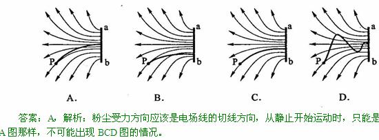 点的带电粉尘颗粒的运动轨迹,下列4幅图中可能正确的是(忽略重力和空气阻力)