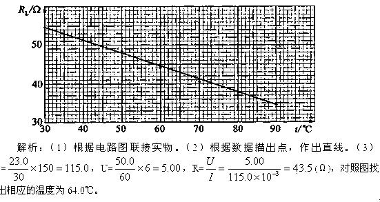 答案:(1)如图所示(2)如图所示(3)115.0mA,5.00V,43.5Ω,64.0℃