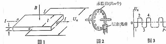 间建立起电场EH,同时产生霍尔电势差UH。当电荷所受的电场力与洛伦兹力处处相等时,EH和UH达到稳定值,UH的大小与