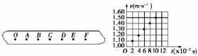 (2)以打B点时为计时起点,建立v-t坐标系如右图所示.请在图中作出小车运动的速度与时间的关系图线;![]()