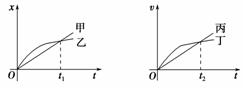 如图1-3-11所示的位移(x)-时间(t)图象和速度(v)-时间(t)图象中给出四条图线,甲、乙、丙、丁代表四辆车由同一地点向同一方向运动的情况,则下列说法正确的是( )