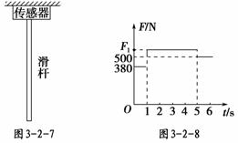 4.(2010·江苏阜宁中学调研)如图3-2-7所示为学校操场上一质量不计的竖直滑杆,滑杆上端固定,下端悬空,为了研究学生沿杆的下滑情况,在杆的顶部装有一拉力传感器,可显示杆顶端所受拉力的大小,现有一学生(可视为质点)从上端由静止开始滑下,5 s末滑到杆底时速度恰好为零,从学生开始下滑时刻计时,传感器显示拉力随时间变化情况如图3-2-8所示,g取10 m/s2,求: