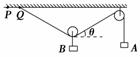 (2010·山西省实验中学模拟)如图2-3-21所示,A、B两物体的质量分别为mA、mB,且mA>mB,整个系统处于静止状态,滑轮的质量和一切摩擦均不计,如果绳一端由Q点缓慢地向左移到P点,整个系统重新平衡后,物体A的高度和两滑轮间绳与水平方向的夹角θ变化情况是( )
