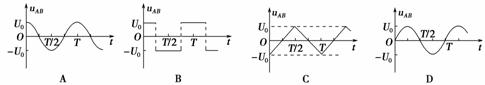 7.如图10-1-22所示,在两平行金属板中央有一个静止的电子(不计重力),当两板间加上交变电压后,能使电子有可能做往返运动的电压是( )