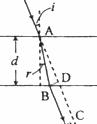 AC为入射光线的延长线。由折射定律和几何关系可知,它与出射光线平行。过B点作