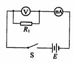 4.(07江苏卷)要描绘某电学元件(最大电流不超过6 mA,最大电压不超过7 V)的伏安特性曲线,设计电路如图,图中定值电阻R为1 kΩ,用于限流;电流表量程为10 mA,内阻约为5 Ω;电压表(未画出)量程为10 V,内阻约为10 kΩ;电源电动势E为12 V,内阻不计。