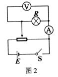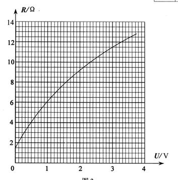 2.(06年北京卷)某同学用图2所示电路,测绘标有“3.8 V,0.3 V”的小灯泡的灯丝电阻R随电压U变化的图象.