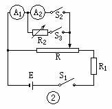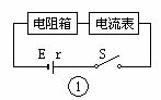 用电流表 A、电阻箱R3及开关S按图①所示电路测电池的电动势和内阻。实验时,改变R3的值,记录下电流表A的示数I,得到若干组 R3、I的数据,然后通过作出有关物理量的线性图象,求得电池电动势 E和内阻r。