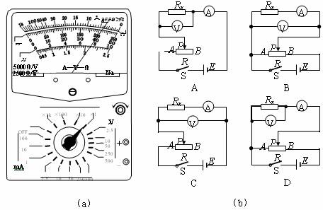 ⑵根据多用电表示数,为了减少实验误差,并在实验中获得较大的电压调节范围,应从图9(b)的A、B、C、D四个电路中选择_________电路来测量金属丝电阻;