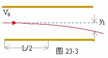 时间,有了侧向位移y1,如图23-3所示。这些离子离开电场时有侧向位移的最小值,即y1。