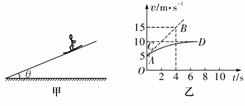 [拓展1]质量为40 kg的雪橇在倾角θ=37°的斜面上向下滑动(如图甲所示),所受的空气阻力与速度成正比.今测得雪橇运动的v-t图象如图乙所示,且AB是曲线的切线,B点坐标为(4,15),CD是曲线的渐近线.试求空气的阻力系数k和雪橇与斜坡间的动摩擦因数μ.
