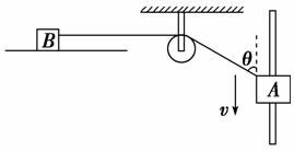 如图4-2所示,沿竖直杆以速度v匀速下滑的物体A通过轻质细绳拉光滑水平面上的物体B,细绳与竖直杆间的夹角为θ,则以下说法正确的是( )