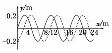 (2)(10分)一列横波在x轴上传播,t1=0和t2=0.005 s时的波形,如图所示的实线和虚线,求: