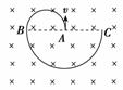 6.如图所示,有一电荷量为q的正离子,从A点沿箭头方向开始运动,运动半周到B点时,突然吸附若干电子,接着又运动半周到C点,已知BC=2AB,磁感线方向垂直指向纸内,电子质量远远小于离子质量重力不计,则离子在B处吸附的电子数为(磁场为匀强磁场)( )