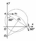 11.如图所示,a点距坐标原点的距离为L,坐标平面内有边界过a点和坐标原点O的圆形匀强磁场区域,磁场方向垂直坐标平面向里.有一电子(质量为m、电荷量为e)从a点以初速度v0平行x轴正方向射入磁场区域,在磁场中运行,从x轴上的b点(图中未画出)射出磁场区域,此时速度方向与x轴的正方向之间的夹角为60°,求:
