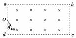 如图所示,一足够长的矩形区域abcd内充满方向垂直纸面向里的、磁感应强度为B的匀强磁场,在ad边中点O,方向垂直磁场向里射入一速度方向跟ad边夹角θ=30°、大小为v0的带正电粒子,已知粒子质量为m,电荷量为q,ad边长为L,ab边足够长,粒子重力不计,求:
