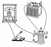某学生做“探究电磁感应的产生条件”的实验,将电流表、线圈A和B、蓄电池、开关用导线连接成如图所示的实验电路,当它接通、断开开关时,电流表的指针都没有偏转,其原因是( )