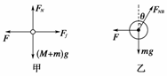 [解析] 选取A和B整体为研究对象,它受到重力(M+m)g,地面支持力FN,墙壁的弹力F和地面的摩擦力Ff的作用(如图甲所示)而处于平衡状态.根据平衡条件有: