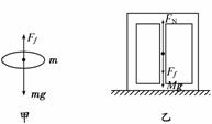 力如图乙所示,受重力Mg,地面对它的支持力FN,及环给它的摩擦力Ff,由于箱子处于平衡状态,可得FN=Ff+Mg.