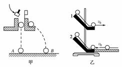 3.如下图甲所示的演示实验中,A、B两球同时落地,说明______,某同学设计了如下图乙的实验:将两个斜滑道固定在同一竖直面内,最下端水平,把两个质量相等的小钢球,从斜面的同一高度由静止同时释放,滑道2与光滑水平板吻接,则他将观察到的现象是________,这说明 ________________________________________________________________________.
