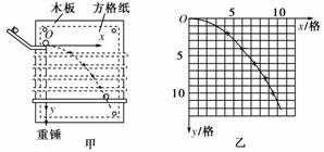 6.如图所示,某同学在做“研究平抛物体的运动”的实验中,在已知判定平抛运动在竖直方向上为自由落体运动后,再来用图甲所示实验装置研究水平方向上的运动.他先调整斜槽轨道使槽口末端水平,然后在方格纸(甲图中未画出方格)上建立直角坐标系xOy,将方格纸上的坐标原点O与轨道槽口末端重合,Oy轴与重垂线重合,Ox轴水平.实验中使小球每次都从斜槽同一高度由静止滚下,经过一段水平轨道后抛出.依次均匀下移水平挡板的位置,分别得到小球在挡板上的落点,并在方格纸上标出相应的点迹,再用平滑曲线将方格纸上的点迹连成小球的运动轨道如下图乙所示.已知方格边长为L,重力加速度为g.