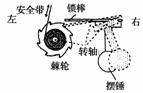 (2009年广东广州)如右图所示是一种汽车安全带控制装置的示意图,当汽车处于静止或匀速直线运动时,摆锤竖直悬挂,锁棒水平,棘轮可以自由转动,安全带能被拉动.当汽车突然刹车时,摆锤由于惯性绕轴摆动,使得锁棒锁定棘轮的转动,安全带不能被拉动.若摆锤从图中实线位置摆到虚线位置,汽车的可能运动方向和运动状态是( )