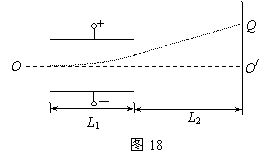 (3)有位同学提出了该装置的改造方案,把球形荧屏改成平面荧屏,并画出了如图18的示意图。已知电场平行金属板长度为L1, 金属板右则到荧屏垂直距离为L2。实验方案的第一步不变,可求出电子在复合场中沿直线向右飞行的速度。第二步撤去磁场,保持电场和电子的速度不变,使电子只在电场力的作用下发生偏转,打在荧屏上出现一个亮点P,通过屏上刻度可直接读出电子偏离屏中心点的距离