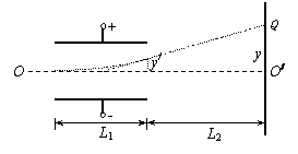如图设电子在电场中偏转的侧向位移为y/,