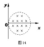 41.(2011石景山期末)图14所示为圆形区域的匀强磁场,磁感应强度为B、方向垂直纸面向里,边界跟y轴相切于坐标原点O.