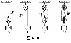 20.用滑轮或滑轮组提起同一重物如图8-110所示,其中机械效率最高的是( )