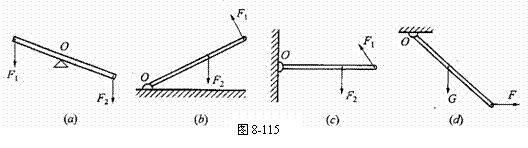 25.在图8-115中画出力F1、F2的力臂